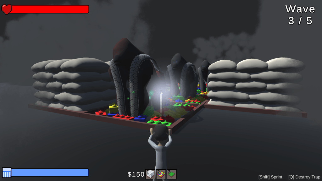 I made the character controller, UI, the second level and the health, resource and enemy wave spawning systems. This game was an entry to the College Game Jam.